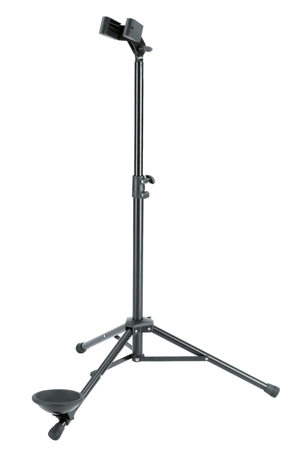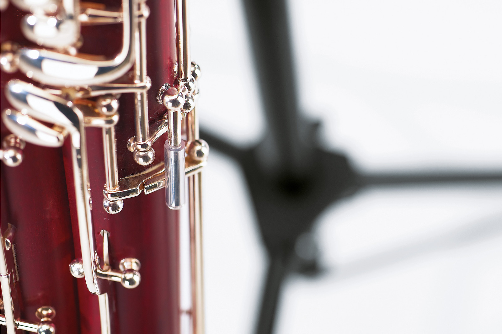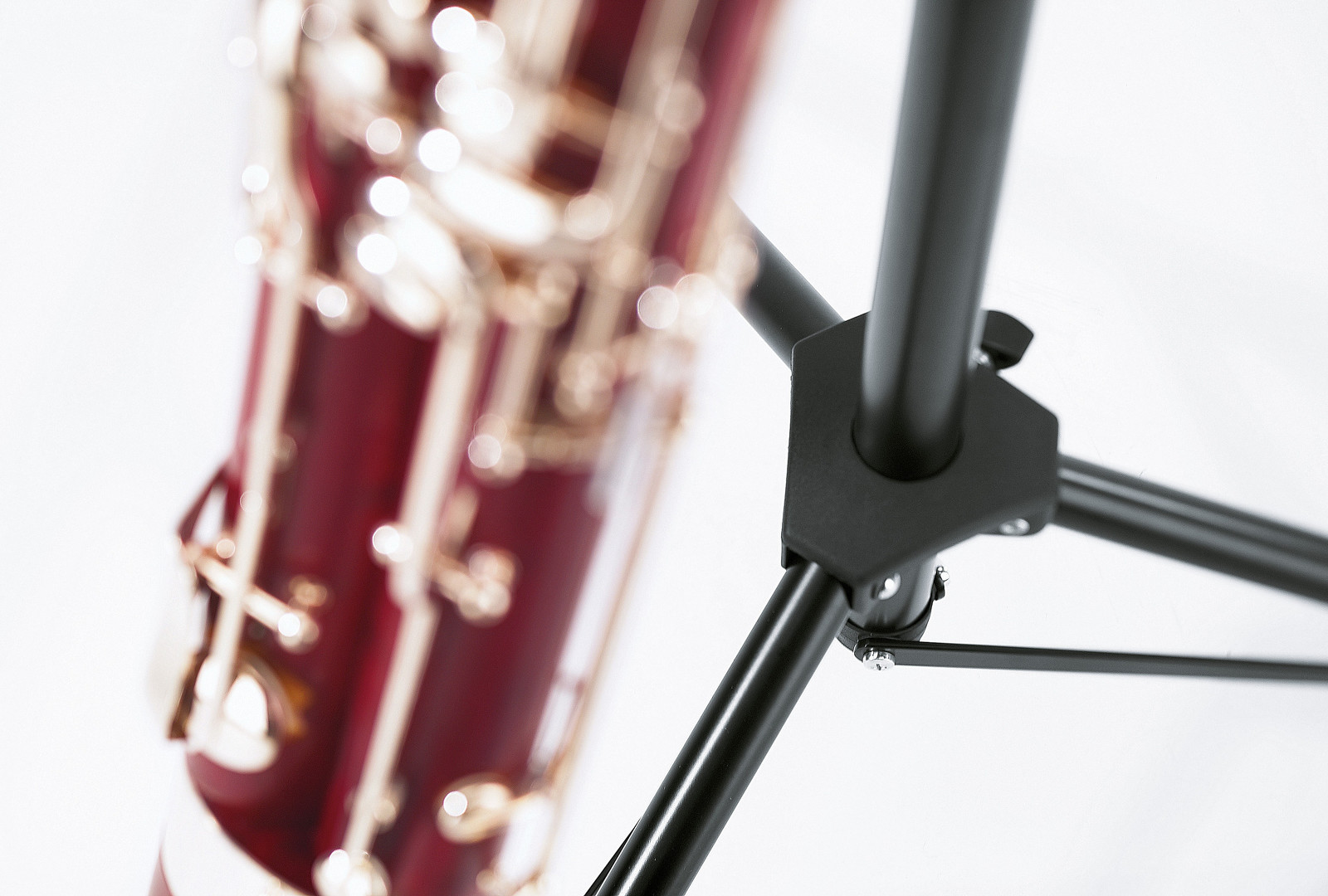 Ocelový stabilní stojan na fagot v novém designu. U podpěry pro nástroj lze nastavit náklon a šířku. Stojan je opatřen ve spodní části nohy nastavitelným gumovým košíkem pro zajištění opory nástroje. Výška 700/1200 mm. Vyrábí se v černé barvě.