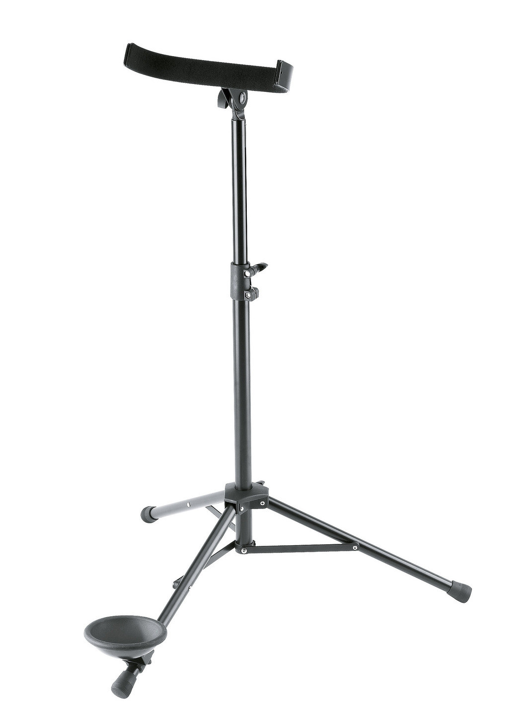 Robustní ocelový stojan na kontrafagot. Podpěra pro nástroj je opatřena filcovou podložkou pro ochranu nástroje. Stojan má ve spodní části nohy gumový košík pro zajištění opory nástroje. Vysoce kvalitní materiály a moderní výrobní postupy zaručují dlouhou životnost tohoto stojanu. Výška 700/1200 mm. Vyrábí se v černé barvě.
