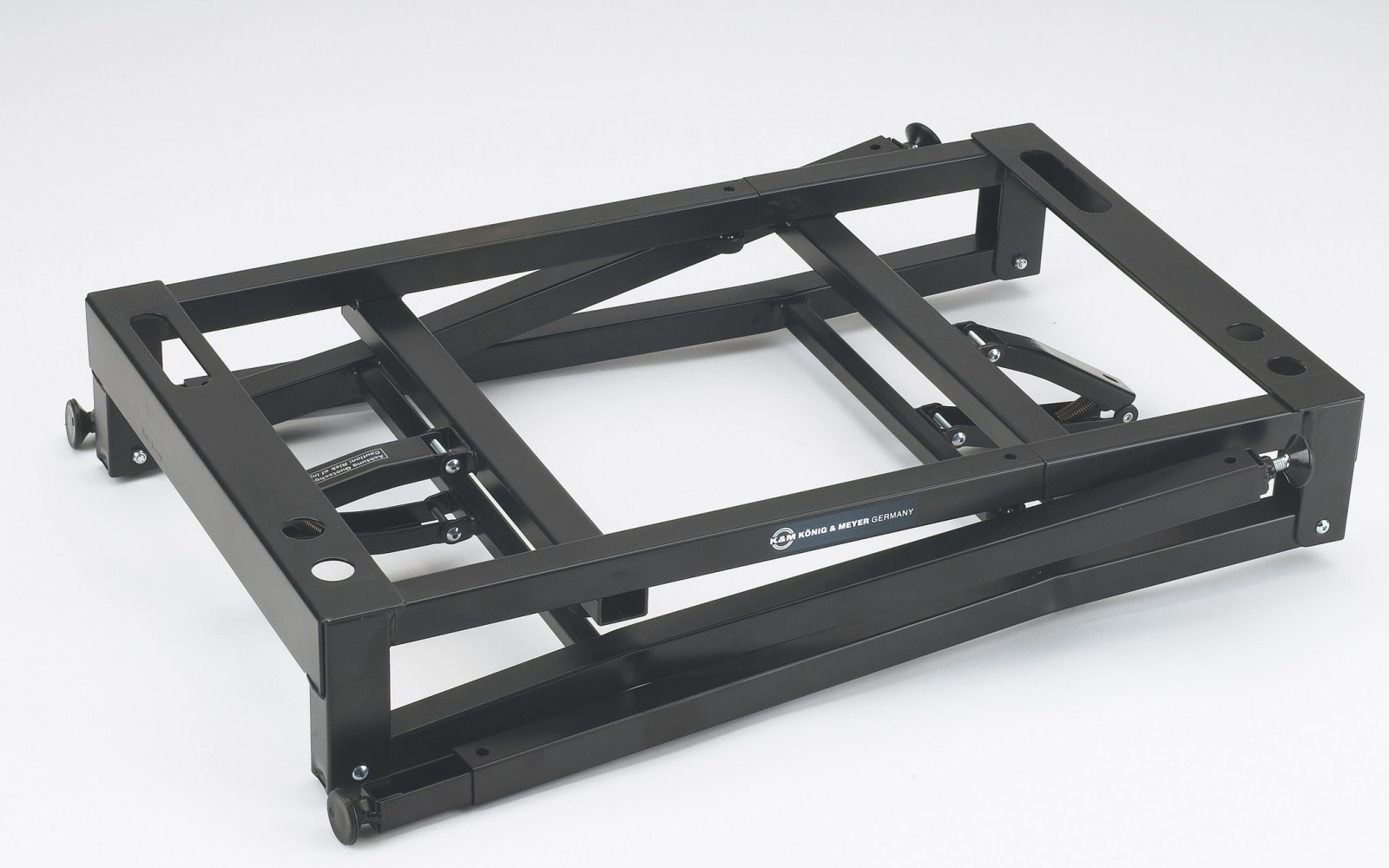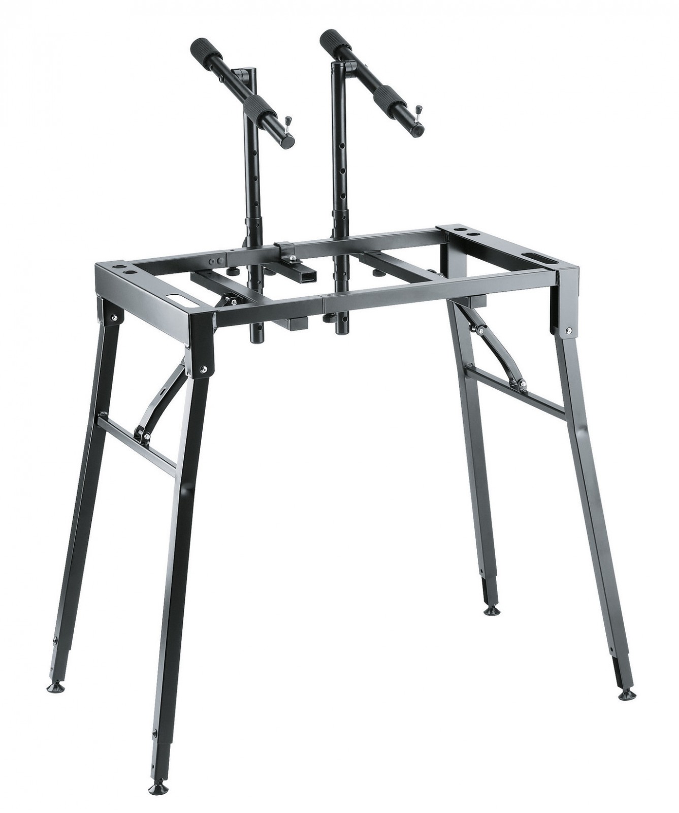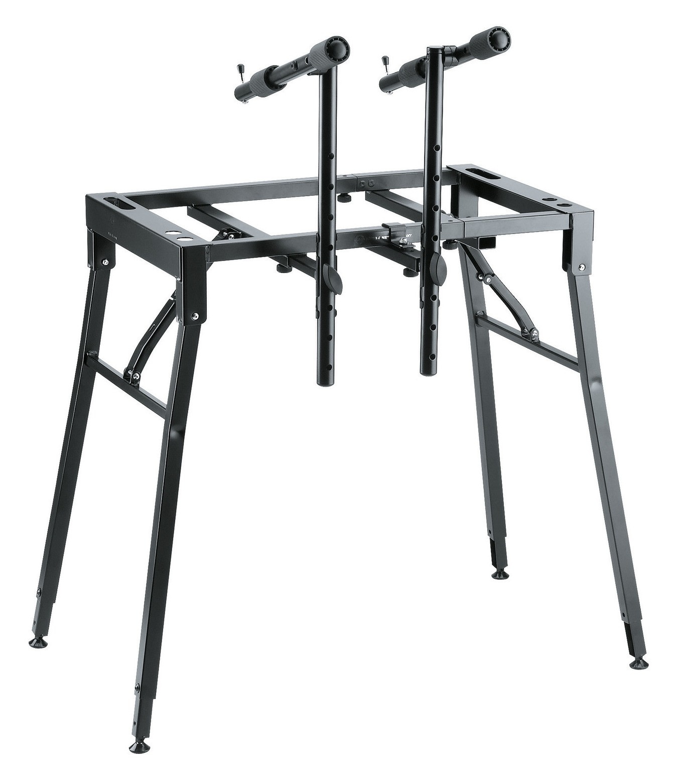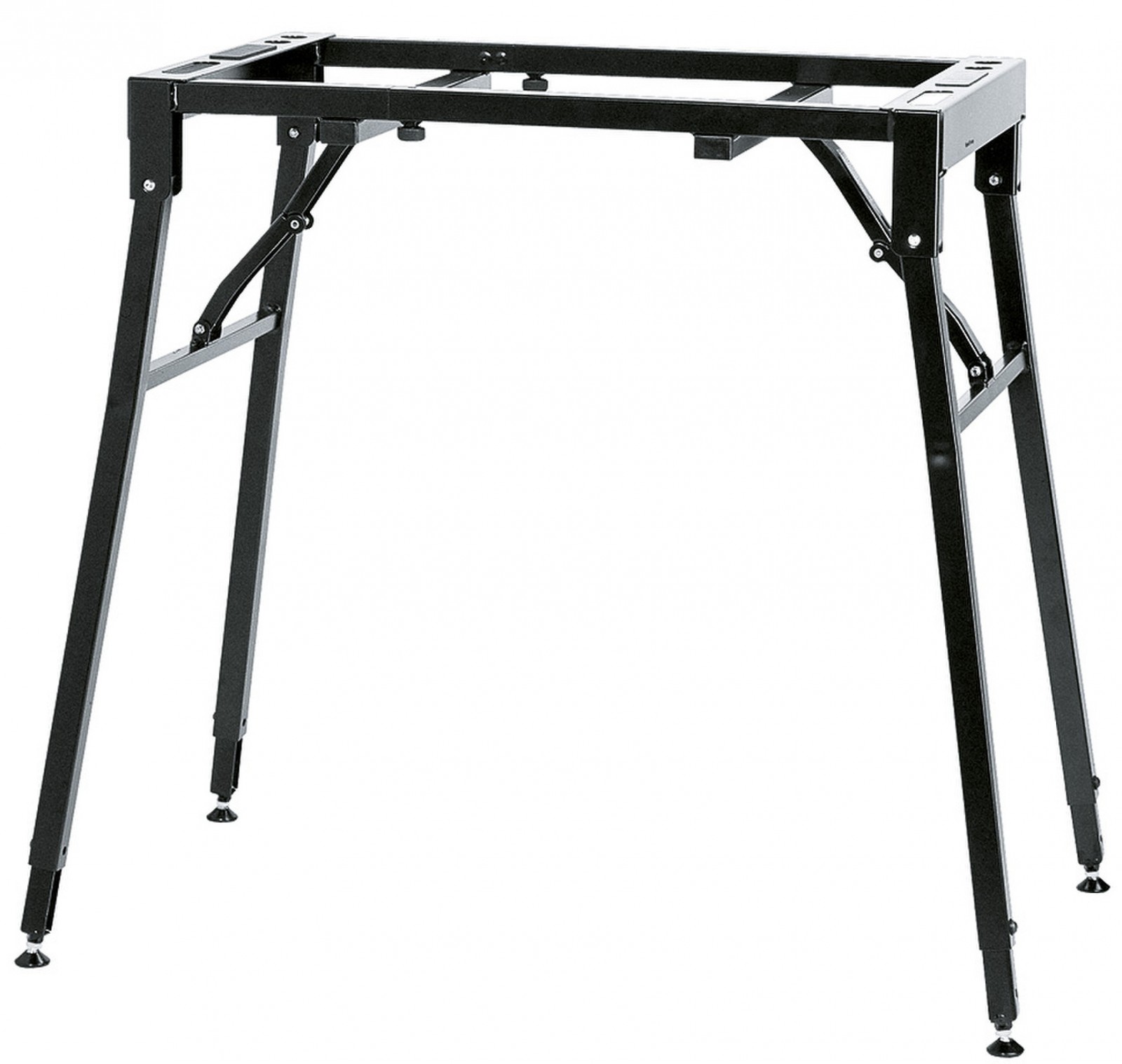 Profesionální ocelový stojan na klávesy. Nosnost 80 kg. Individuální nastavení výšky pro každou nohu, šrouby pro vyrovnání nerovností podlahy. Snadný transport. Šířka 650/1030 mm. Výška 670/910 mm. Volitelné příslušenství: nástavec 18952, držák na laptop 18815, mikrofonní rameno 18956, notový držák 18958, držák iPadu 18816 a univerzální držák 18817. Vyrábí se v černé barvě.
