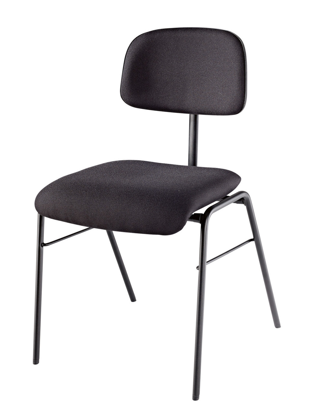 Stabilní pohodlná židle pro hudebníky s čalouněným sedákem a opěradlem. Sedák a opěradlo jsou vyrobeny z vícevrstvého laminovaného dřeva. Tkanina je 100% polyester a má odolnost 100 000 otěruvzdorných cyklů. Konstrukce je vyrobena z robustních ocelových trubek s tloušťkou stěny 2 mm. Židle je stohovatelná (lze stohovat až 6 žídlí) . Výška 480 mm. Rozměry sedáku 440 x 440 mm. Hmotnost 6 kg. Vyrábí se v černé barvě.