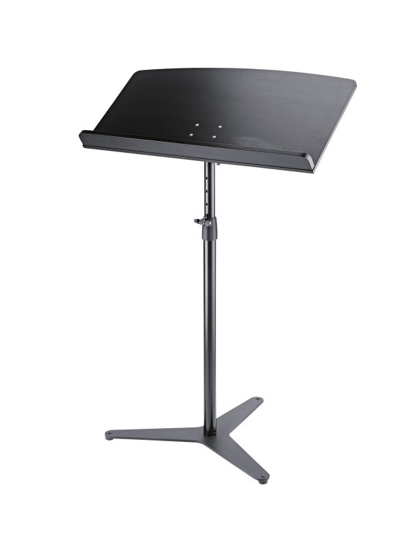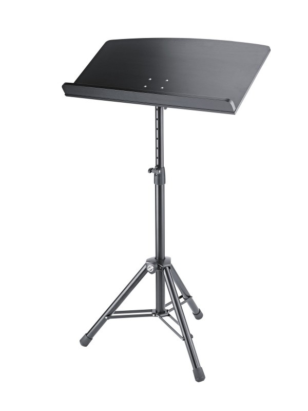 Klasický dirigentský pult vyrobený z vícevrstvého laminovaného bukového dřeva. Rozměry desky 800 x 400 mm. Vhodné pro dirigentské stojany „König & Meyer“ 12330 a 12331. Vyrábí se v černé barvě.