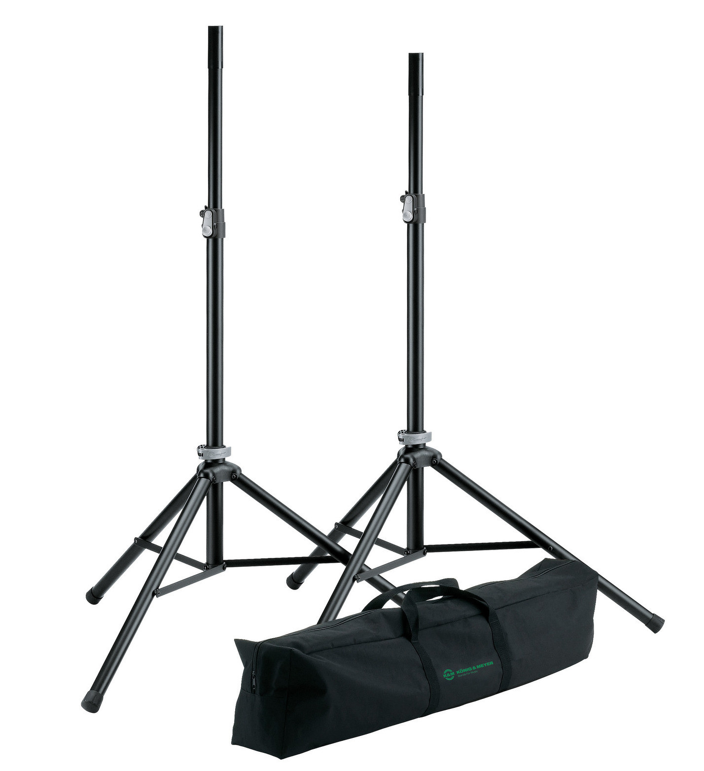 Set dvou vysoce kvalitních hliníkových reproduktorových stojanů s transportním obalem. Výška stojanu 1270/1930 mm. Nosnost 50 kg. Snadné nastavení výšky pomocí patentovaného tlačítkového systému. Součástí balení je adaptér 21326. Vyrábí se v černé barvě.