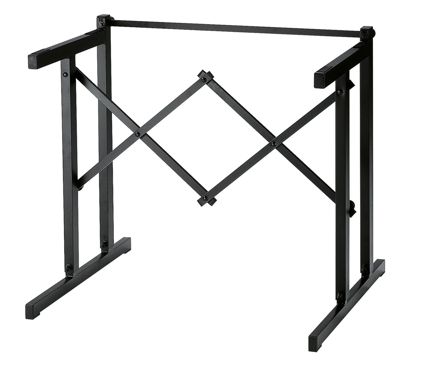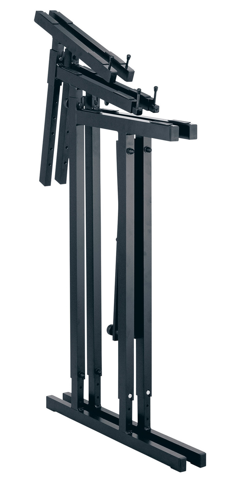 Stabilní a lehký profesionální hliníkový stojan na klávesy. Výška 630/960 mm. Nosnost 50 kg. Na stojan je možné připevnit držáky na další klávesy 18881 a 18882. Vyrábí se v černé barvě.