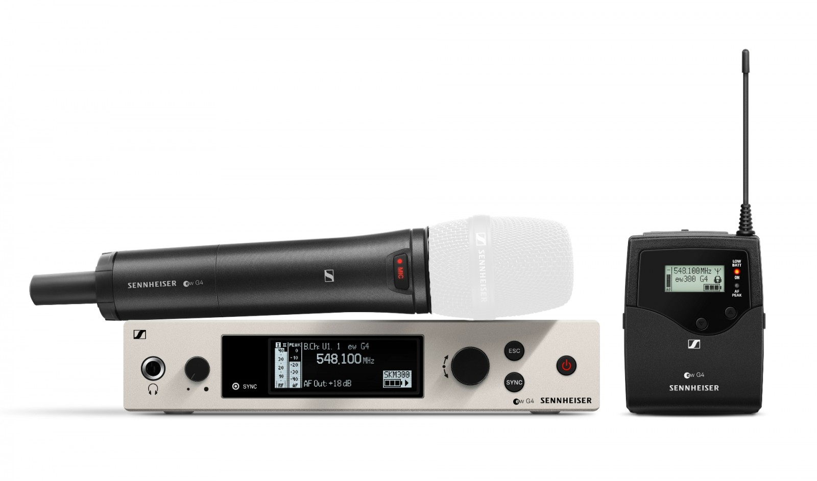 ew 300 G4-SK/M (BASE COMBO)je bezdrátový set s ručním vysílačem bez mikrofonní hlavy a kapesním vysílačem bez klopového mikrofonu. Ruční vysílač SKM 300 G4-S s tlačítkem MUTE a nabíjecími kontakty můžete zkombinovat s jakoukoli mikrofonní hlavou. Kapesní vysílač SK 300 G4 spolupracuje s jakýmkoliv klopovým nebo hlavovým mikrofonem kompatibilním s řadou ew. Stejně jako rackový přijímač EM 300 G4 je vybaven jednadvaceti skupinami frekvencí s dvaatřiceti přímo přístupnými předvolbami pro okamžité použití.
